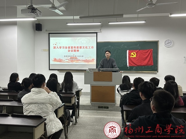 根据主题教育理论学习计划安排,12月6日,金年会jinnianhuicom学生第六党支部在教学楼D406集中学习全省宣传思想文化工作会议精神,此次会议由支部书记主持,支部全体党员参加会议。