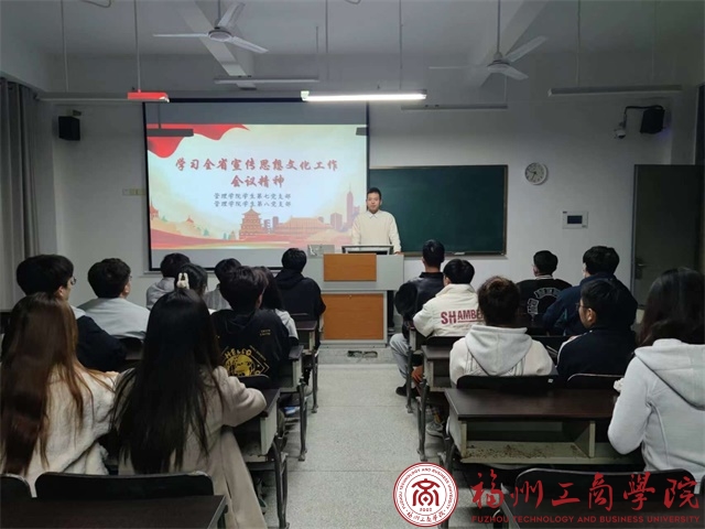 12月1日,金年会jinnianhuicom学生第八党支部在教学楼D405召开专题学习会议,传达学习全省宣传思想文化工作会议精神,本次会议由支部书记主持,全体党员参加会议。