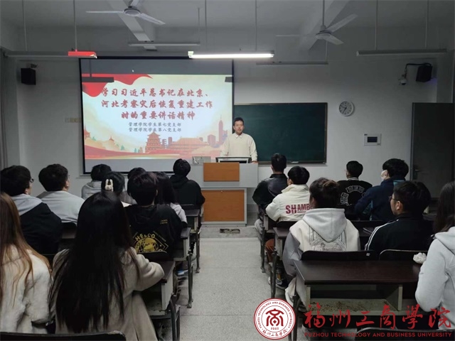 12月7日晚,金年会jinnianhuicom学生第八党支部在教学楼D405组织召开深入学习习近平总书记在北京、河北考察灾后恢复重建工作时的重要讲话精神。此次会议由支部书记主持会议,全体党员参会。