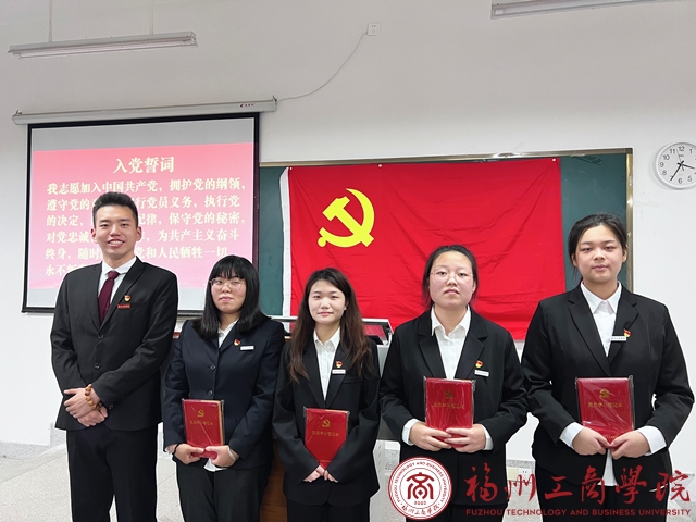 随后,支部书记带领全体新党员进行入党宣誓,并为4位新接收预备党员佩戴象征党员身份的党徽、颁发支部笔记本作为她们政治生日的祝福,提高她们入党的荣誉感和仪式感。