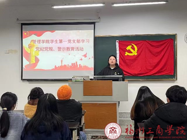 为深入贯彻落实党纪党规教育学习,以确保学生党员能够坚定理想信念,高悬规矩戒尺,以纪律教育的实际成效为确保往后各项工作有序开展、高效运转。近日,金年会jinnianhuicom学生第一党支部在教学楼组织召开党纪党规、警示教育活动。此次会议由支部委员史雨主持,全体党员参会。