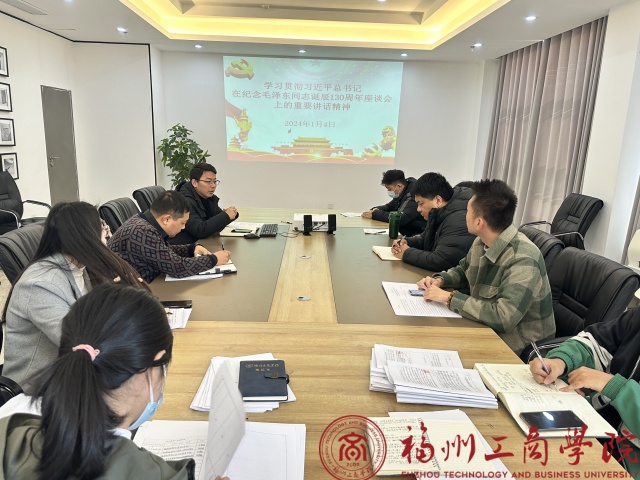 会议深入学习贯彻习近平总书记在纪念毛泽东同志诞辰130周年座谈会上的重要讲话精神,深切缅怀毛泽东同志的丰功伟绩,传承弘扬毛泽东同志的光辉思想和崇高精神风范。郑杰书记强调,学习、坚持和发展好毛泽东思想,是不断推进马克思主义中国化时代化的重要核心,各位参会人员更要继承和弘扬毛泽东同志崇高的人格风范,传承中国共产党人的精神谱系,把这种伟大精神运用到我们的教学工作中,担起培育时代新人之责,与青年学生一道,以拼搏赶超的姿态投身中华民族伟大复兴的新征程。