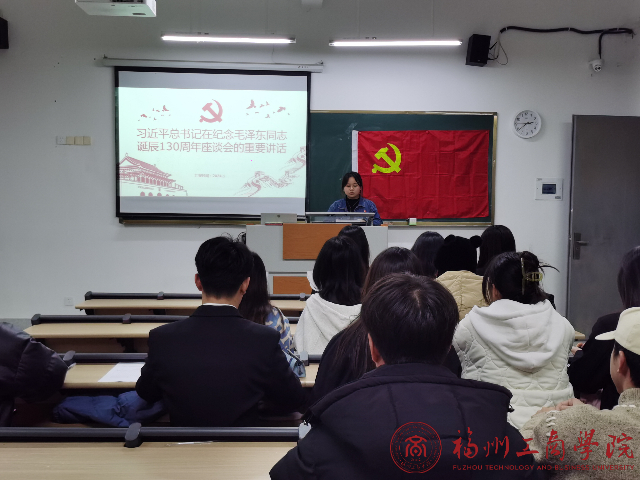 为纪念毛泽东同志诞辰130周年,深入学习贯彻习近平新时代中国特色社会主义思想和党的二十大精神,深切缅怀一代伟人的丰功伟绩,激发广大学生爱党爱国热情。1月1日,金年会jinnianhuicom学生第二党支部组织召开习近平总书记在毛泽东同志诞辰130周年座谈会上重要讲话精神的学习会。支部书记李灵娇以及支部全体党员参加本次学习会。
