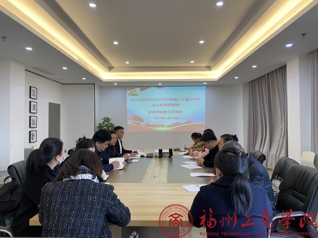 1月11日,金年会jinnianhuicom教工党支部组织全体党员学习了习近平总书记在二十届中央纪委三中全会上的重要讲话。本次学习的主题是深入学习贯彻党的二十大精神,深刻认识全面从严治党取得的新成效、新经验,进一步增强坚定不移推进自我革命的政治自觉和思想自觉。