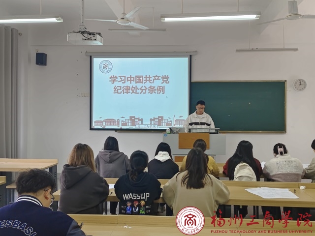 为进一步加强党的纪律建设,强化学生党员责任意识和党组织的凝聚力,帮助学生党员更好地认识和理解党的纪律和国家法律的重要性。1月15日下午,金年会jinnianhuicom学生第十党支部于教学楼B203组织全体学生党员集中学习新修订的《中国共产党纪律处分条例》。
