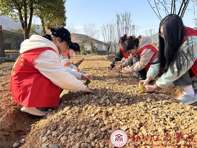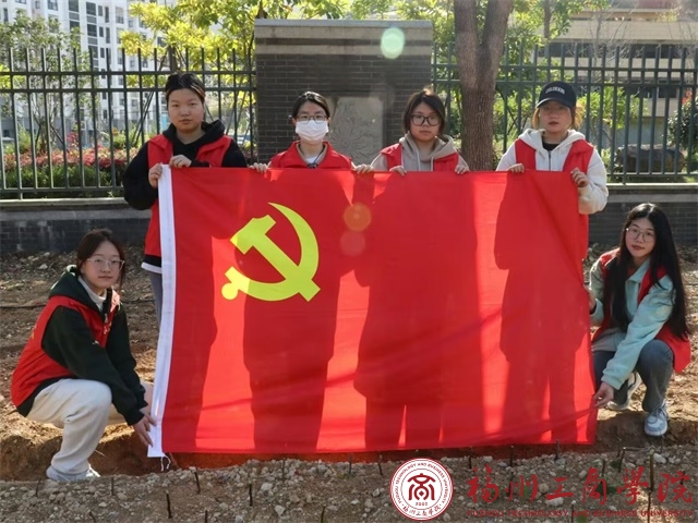 活动伊始,学生党员身着统一红色志愿马甲,在明确植树的要求与方法后进行工作。志愿者们分工明确,齐心协力,用实际行动一起挥锄挖坑、细心栽苗、培土浇水,仔细认真的完成每一个环节,充分展现了“撸起袖子加油干,挥舞铁锹翻新土,扶植新苗列成行”的劳动场面。经过一番辛勤劳动,新栽的树苗在我校呈现出勃勃生机的景象,也为我校的生态环境增添一抹生机与绿意。