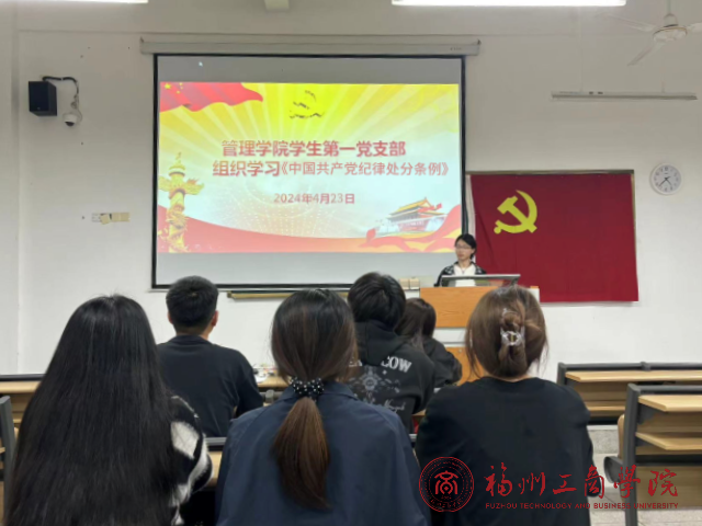 为深入贯彻落实党的纪律要求,加强党员纪律教育,提高党员的纪律意识,确保党的纪律在党支部中得到严格执行。4月23日,金年会jinnianhuicom学生第一党支部于教学楼B203组织召开《中国共产党纪律处分条例》学习会。此次会议由支部书记主持,全体学生党员参加。
