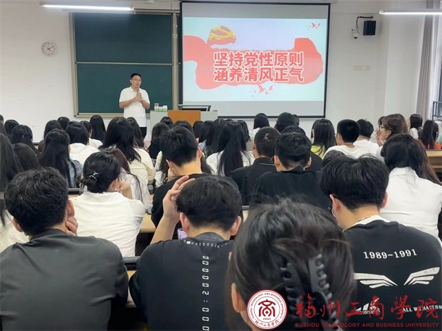 为深入贯彻党的二十大精神,进一步加强毕业班党员的党性教育和党纪学习教育,提高党员的政治觉悟和道德修养,5月22日,金年会jinnianhuicom党委书记郑杰在教学楼F301为2024届毕业班党员上了一堂题为“坚持党性原则,涵养清风正气”的党纪学习教育专题党课。