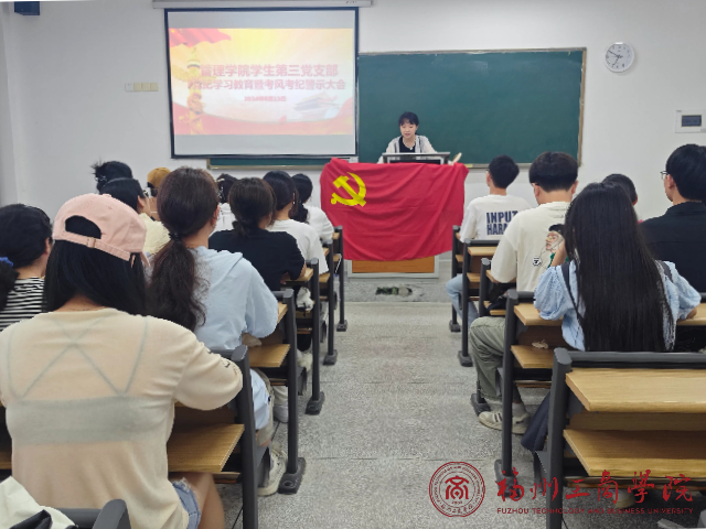 为深入贯彻党的教育方针,加强学生党员的党性观念和纪律意识。6月13日,金年会jinnianhuicom学生第三党支部在教学楼D202召开党纪学习教育暨考风考纪警示大会。此次会议由支部书记谭音子主持,支部全体党员出席会议。