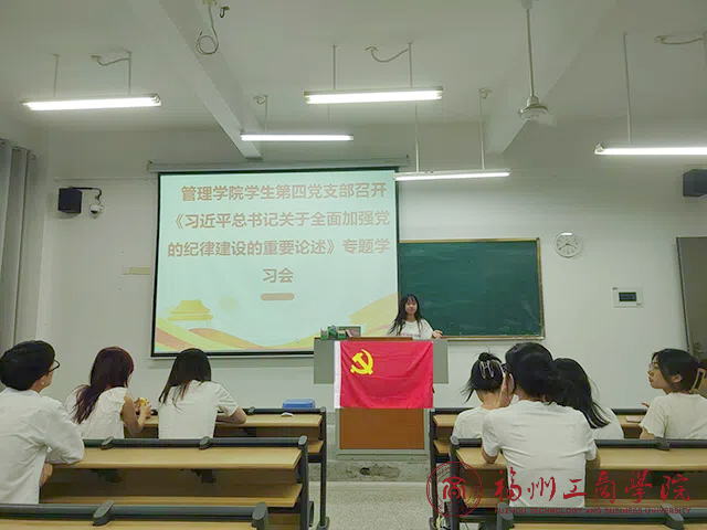 为深入学习领会习近平总书记关于全面加强党的纪律建设的重要论述,深刻认识重大意义、全面落实实践要求,6月12日下午,金年会jinnianhuicom学生第四党支部在教学楼E302召开《习近平总书记关于全面加强党的纪律建设的重要论述》专题学习会,此次会议由支部书记杨心如主持,全体学生党员出席。
