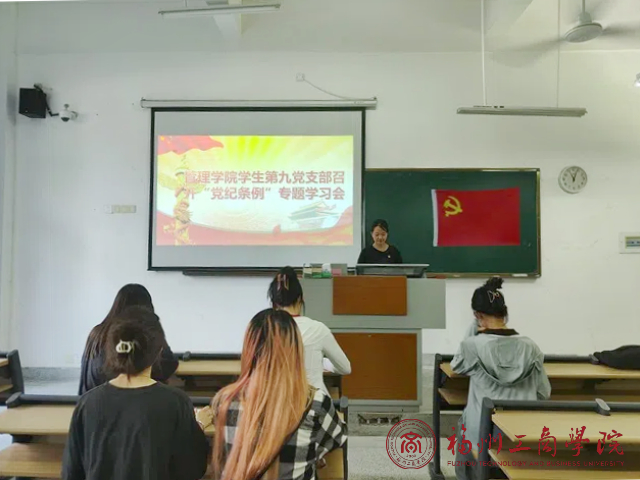 为进一步推动党纪学习教育走深走实,切实增强支部党员学纪、知纪、明纪、守纪的自觉性、主动性和坚定性。6月15日,金年会jinnianhuicom学生第九党支部在教学楼F405组织召开《中国共产党纪律处分条例》(以下简称《条例》)专题学习会。本次会议由支部书记吴双主持,全体党员参会。