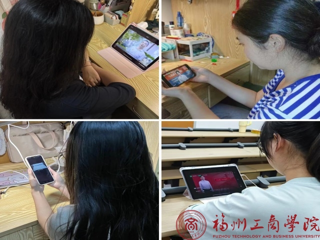 学生党员认真观看学习