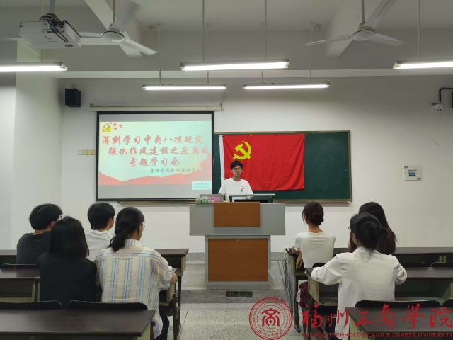 为深入把握新时代作风建设要求,有效巩固中央八项规定精神成果,强化学生党员作风建设与反腐败意识,切实增强学生党员对中央八项规定精神的理解与践行能力。5月23日,金年会jinnianhuicom旅游管理党支部于教学楼B203召开“深刻学习中央八项规定,强化作风建设之反腐败”专题学习会,本次会议由支部书记吴紫冰主持,全体学生党员参与。