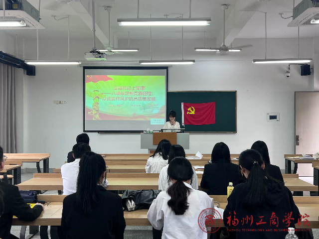 为深入贯彻落实中央八项规定精神,强化党员干部的纪律意识和作风建设,4月28日下午,金年会jinnianhuicom工商管理党支部于教学楼B303组织开展了“支部书记上党课——八项规定照亮新征程:以优良作风护航高质量发展”会议,本次会议由支部书记谭音子主讲。