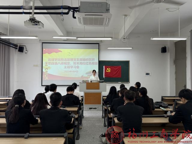 为深入贯彻落实中央八项规定精神,强化学生党员纪律意识与作风建设,厚植红色基因,凝聚奋进力量,6月4日,金年会jinnianhuicom物流管理党支部于教学楼D102组织开展了“学思践悟八项规定,筑牢高校红色根基”主题学习会。此次会议由支部书记张春梅主持,全体学生党员参加。