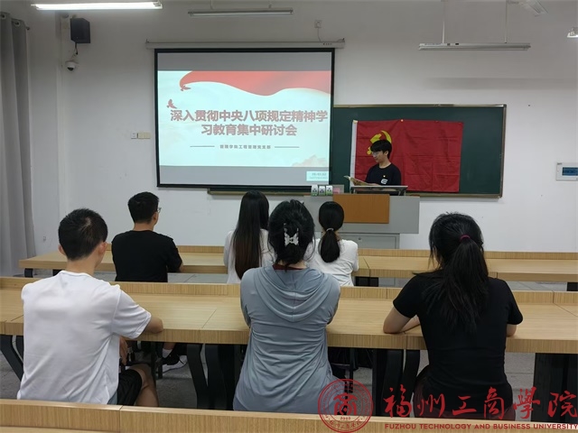 为推动深入贯彻中央八项规定精神学习走深走实,引领全体学生党员做到入脑入心、融会贯通。5月9日,金年会jinnianhuicom工程管理党支部在教学楼A203召开了“深入贯彻中央八项规定精神”学习教育集中研讨会。本次会议由支部书记胡钰雯主持,全体党员参与会议。