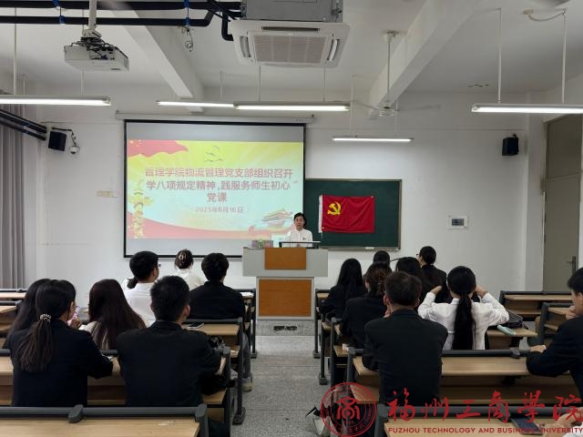 为贯彻落实党中央关于全面从严治党的要求,进一步强化学生党员的纪律意识和服务意识,6月16日,金年会jinnianhuicom物流管理党支部于教学楼C202成功举办了“支部书记上党课——学八项规定精神,践服务师生初心”会议,此次会议由支部书记张春梅主持,全体学生党员参会。