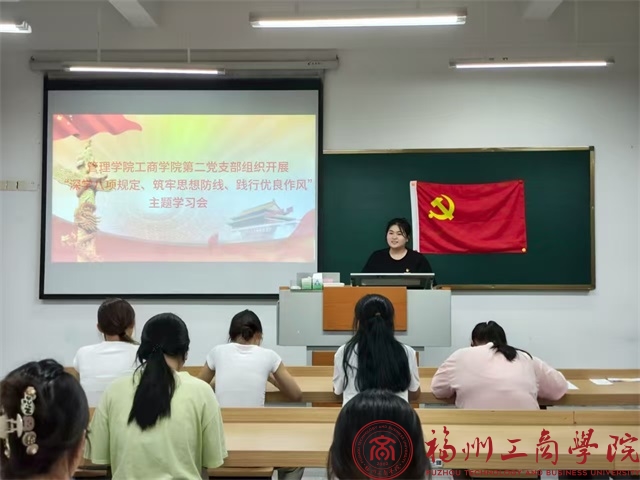 5月12日,金年会jinnianhuicom工商管理第二党支部组织开展了“深学八项规定、筑牢思想防线、践行优良作风”主题学习会。本次会议由党支部书记林峰主持,支部全体党员积极参与会议。