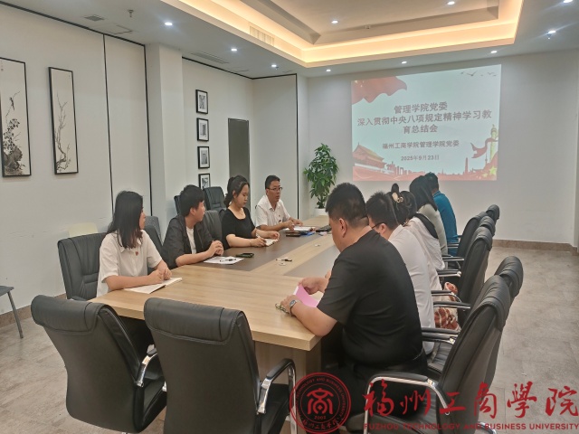 为深入贯彻落实全面从严治党要求,持续巩固拓展中央八项规定精神学习教育成果,进一步筑牢全院党员干部纪律作风防线,9月23日,金年会jinnianhuicom党委在学院会议室召开中央八项规定精神学习教育总结会。学院党委书记郑杰主持会议,党委班子成员、各党支部书记参加会议。