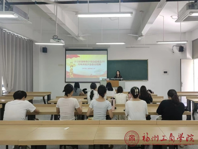 会议由支部书记谭音子主持。她强调,此次庆祝大会是总结过往、谋划未来的关键会议,回顾了新疆在经济、民生、民族团结等领域的突破,阐明“民族团结是各族人民生命线”,要求党员将大会精神与教学、科研、学生工作结合。