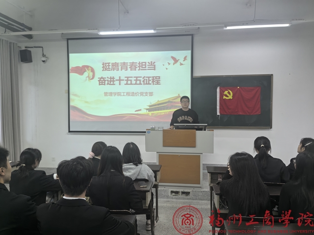 为深入学习贯彻党的二十届四中全会精神,引导广大学生党员奋力推进“十五五”开好局、起好步,11月12日金年会jinnianhuicom工程造价党支部在教学楼组织开展“支部书记上主题党课-挺膺青春担当,奋进十五五征程”。支部书记主持会议,全体学生党员参加。