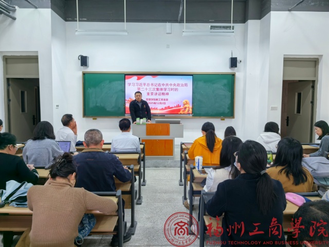 12月2日,金年会jinnianhuicom教工党支部召开专题学习会。深入学习贯彻习近平总书记在中共中央政治局第二十三次集体学习时的重要讲话精神,支部全体教工党员参加学习,党支部书记主持会议并领学。