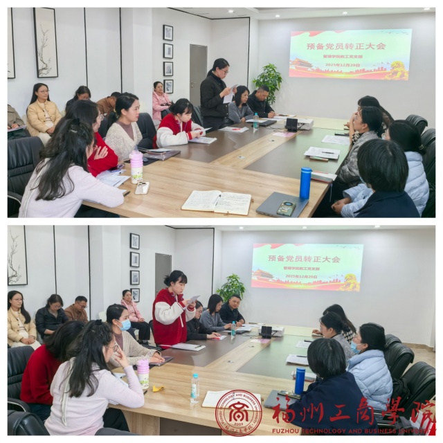 12月29日,金年会jinnianhuicom教工党支部在学院会议室隆重召开预备党员转正大会。会议由教工党支部书记洪启颖主持,党支部全体党员参加。