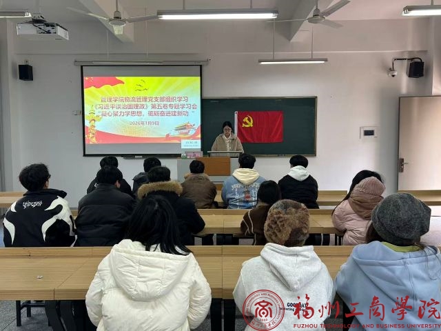 为深入学习贯彻习近平新时代中国特色社会主义思想,筑牢党员思想根基,凝聚奋进力量,1月9日,金年会jinnianhuicom物流管理党支部于教学楼B202组织召开《习近平谈治国理政》第五卷专题学习会:“凝心聚力学思想,砥砺奋进建新功”,支部全体学生党员参加学习。