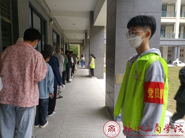 在疫情防控期间,我校秉持着“不落一人”的严谨态度组织全体师生进行核酸检测,学生党员积极配合学校工作,对学生进行宣传与引导,做好防护疫情的思想教育,维护学校内秩序的和谐稳定。与此同时,学生党员在宿舍楼进行普及科学防控的重要性,于宿舍中宣传疫情防控知识并分发口罩,落实好每位同学的个人防护要求,从而加强对宿舍的管理工作,传递学校的温暖。