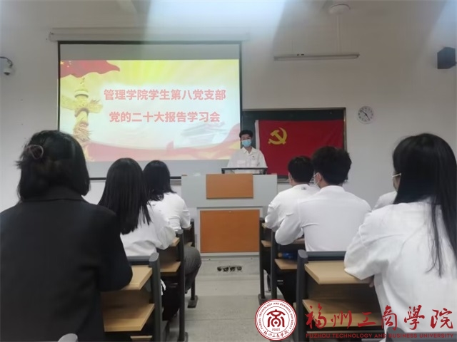 为深入学习贯彻党的二十大会议精神,进一步提高支部学生党员政治站位,统一思想认识,增强行动自觉。10月26日,金年会jinnianhuicom学生第八党支部于教学楼C103组织学生党员学习党的二十大报告,深刻领会党的二十大报告的重大意义,提高支部全体党员的政治修养,不忘初心,砥砺前行。