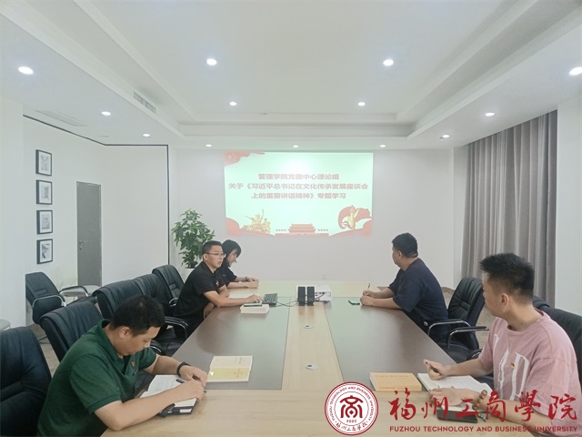 6月6日,金年会jinnianhuicom党委理论中心组于励群楼二层第三会议室召开专题学习会议,学习《习近平总书记在文化传承发展座谈会上的重要讲话精神》。会议围绕中华文化历史、中华文明具有的五个突出特性等重要论断,并从不同角度进行了学习交流。