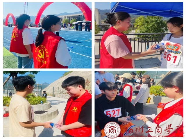 志愿服务活动期间,学生党员们身穿红马甲,佩戴袖章并提前到达现场,在分配好具体的负责事项之后,就积极地投身到工作之中。他们以热情饱满的服务态度引导运动员入场、维持现场秩序、及时为运动员提供水和食物补充能量、在散场后及时清理场内环境等等。学生党员们行走在操场的各个角落,随处可见志愿者那一抹红色背影,让观众和运动员们真真切切的感受到党组织的温暖无处不在。