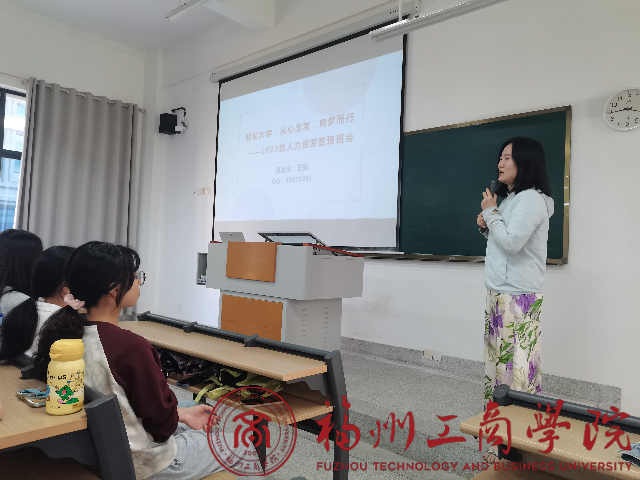 2023年10月17日,王婧老师在E104为2023级人力资源管理1班召开“解锁大学:从心出发,向梦而行”主题班会。