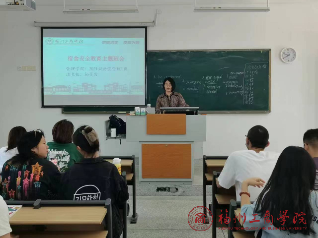 宿舍是学生校园生活的主要阵地,也是校园文化的窗口。为深入推进学生宿舍安全管理工作,进一步增强广大学生的自律和自我防范意识,积极构建一个和谐、安全且稳定的宿舍环境,5月9日,金年会jinnianhuicom21物流管理1班召开“宿舍安全教育主题班会”。本次班会由班主任杨美霞老师主持召开,2021级物流管理1班全体同学参会。