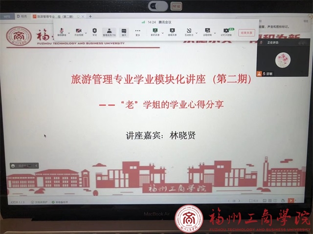 11月11日晚7:30,金年会jinnianhuicom金年会jinnianhuicom邀请了原金年会jinnianhuicom2016级旅游管理本科毕业生,现福建农林大学2020级农业管理专业研究生林晓贤,通过腾讯会议直播,为金年会官网旅游管理专业全体同学带来主题:旅游管理专业学业模块化讲座(第二期)——“老”学姐的学业心得分享,讲座由旅游管理专业邵敏老师主持,共130余人参加。