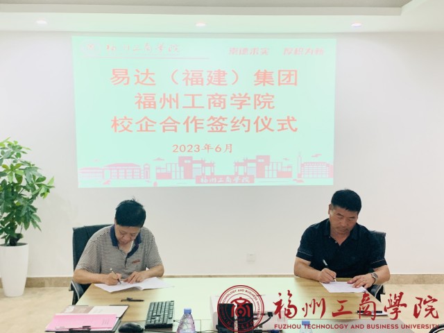 余少谦、连明辞分表代表学院和易达(福建)旅游集团有限公司签订了校企合作协议并为教学实践基地授牌。