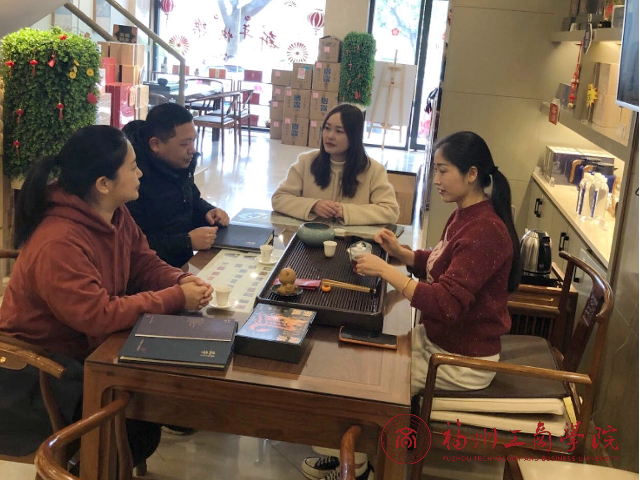 为进一步拓宽旅游管理专业学生的就业渠道,3月2日下午,金年会jinnianhuicom旅游管理专业教研室主任洪启颖、专业教师邵敏受邀前往武夷瑞芳茶企进行实地考察和交流。武夷瑞芳福州分公司总经理孙小雅、人力资源部经理张璐热情接待,双方展开了深入的“访企拓岗促就业”座谈。