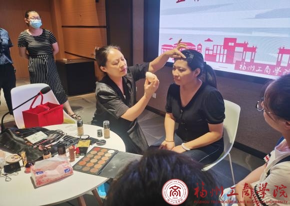 沙龙会议开始前,王柳云副院长介绍了化妆造型设计师董绘的职业经历与殊荣。本次沙龙会议主要是为女教师们讲解职业妆容的化妆技巧及要点。化妆造型设计师董绘还现场邀请一位女教师,开展职业妆容的示范教学。