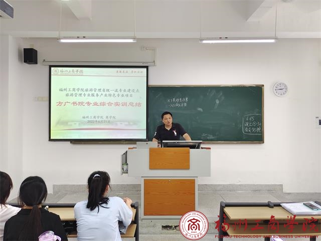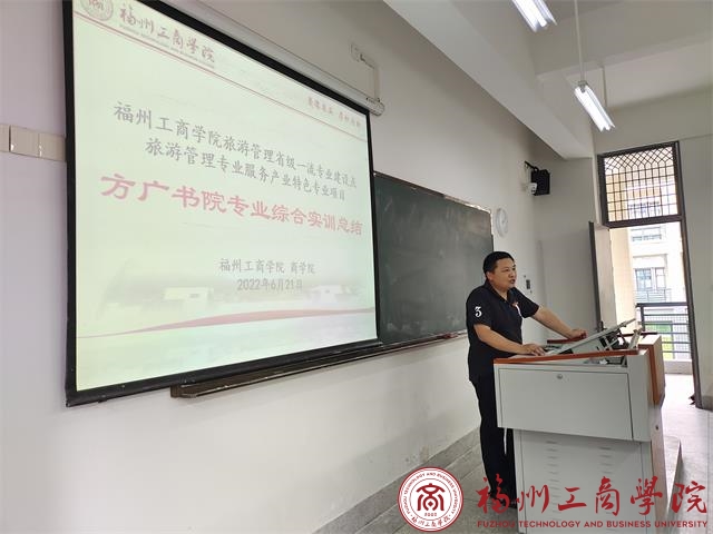 6月21日下午,我校金年会jinnianhuicom召开了2022年度福建方广书院酒店旅游管理专业综合实习汇报会。此次方广书院专业综合实习汇报由旅游管理专业2019级旅游管理1班进行汇报,福建方广书院酒店王诚经理、旅游与工商管理教研室主任洪启颖老师出席,2019级旅游管理1班全体同学参加。