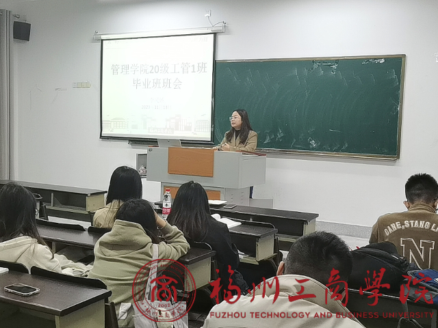 2023年11月13日,李灵娇辅导员在教学楼E401组织召开20级工商管理1班毕业班主题班会。本次班会旨在为同学们提供了学业、就业、考公、考研等方面的建议和指导,希望能够帮助同学们找到一份适合自己的工作,帮助同学们更好地就业。