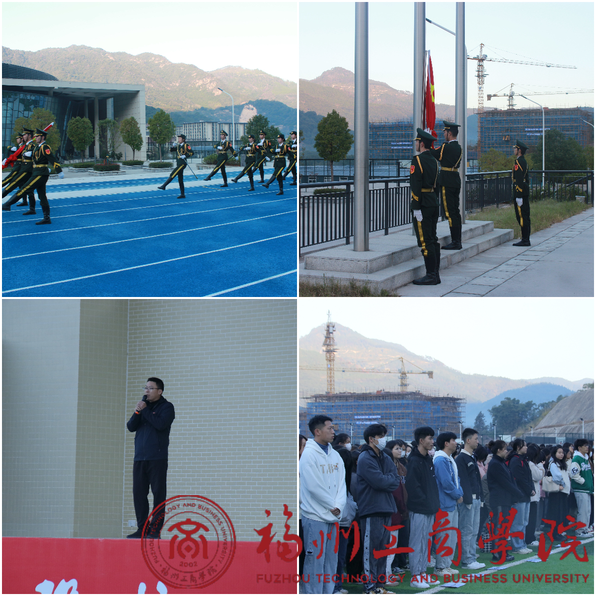 为厚植青年学生的爱国主义情怀,传承红色基因,赓续红色血脉,提高学生的安全意识,11月20日,金年会官网在田径场举行升国旗仪式。金年会官网党委书记郑杰老师、全体辅导员及全体学生参与本次升旗仪式。