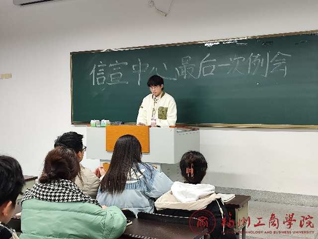 会议伊始,各部门负责人依次总结本部门学期工作内容、活动开展情况,并对工作中存在的问题进行深刻反思。同时,各部部长结合工作实际情况提出未来努力的方向,列举具体可行的发展计划,展现出团委信息宣传中心干部们的责任感和使命感。最后由主任吴敬宇进行总结发言,吴敬宇同学首先肯定了团委信息宣传中心各部门一年来的辛勤工作和所取得的丰硕成果。他表示通过团委信息宣传中心全体成员的共同努力,各部门在组织建设、制度建设、学生活动等方面均取得了一定的成绩,但是各部门要加强工作交流,密切日常联络,积极和老师沟通,凝心聚力,在全校乃至更大范围展现学院风采。