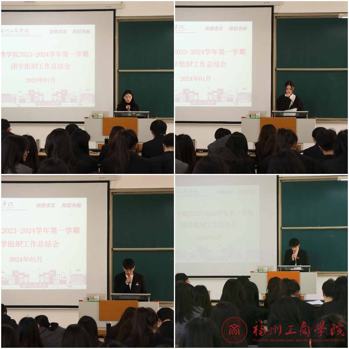 接着,张春梅老师上台总结致辞,首先着重提出会议纪律,随后指出学生干部们应该恪守本分,坚定信念,踏实担当,提升工作创新能力,并祝学生干部们学业工作两提升,成为出色的学生干部。