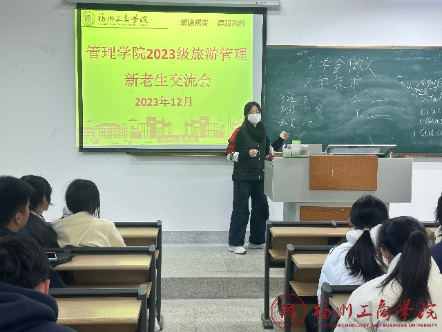 期末已至,新生也适应了校园生活,进一步促进新老生之间的交流和融合,提升学习氛围和团队合作能力,让他们有更明晰的规划,金年会jinnianhuicom于12月22日下午举办了2023级旅游管理1班的新老生交流会。这次活动旨拉近新老生之间的距离,也为大家创造了一个相互交流、相互鼓励的平台。会议邀请到了21级旅管的优秀学生,由辅导员李灵娇主持。