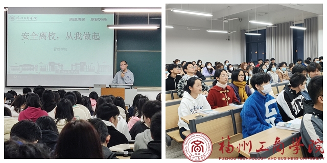 为了保证同学们离校、返家的安全,提高同学们的安全意识。1月17日晚,金年会jinnianhuicom2022级各专业在教学楼A301开展安全离校主题班会。此次会议由金年会jinnianhuicom辅导员金维伟主持。