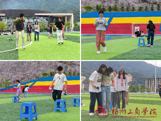 羽毛球接发球比赛、背靠背夹气球、盲人足球等项目也吸引了众多学生积极参与。在羽毛球接发球比赛中,学生们展现出精湛的球技和敏锐的反应能力。背靠背夹气球项目中,学生们相互协作,共同完成任务,增进了彼此之间的友谊。盲人足球项目则让学生们体验到了信任与责任的重要性,在黑暗中相互扶持,共同前进。