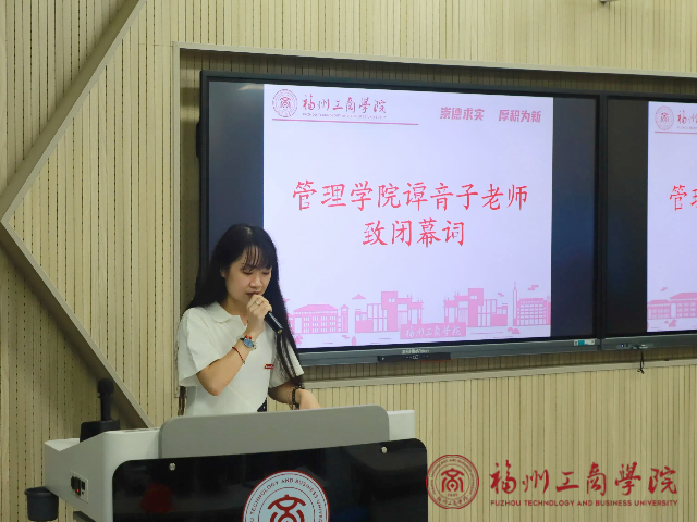大会第六项,金年会jinnianhuicom辅导员谭音子老师致闭幕词。其提出三点希望:一是接好前行的接力棒,虚心学习、积累经验;二是传递积极的正能量,主动担责、做出表率;三是凝聚集体的创造力,勇于创新、乐于奉献。最后,谭音子老师祝贺第二届全体团学组织干部未来可期。