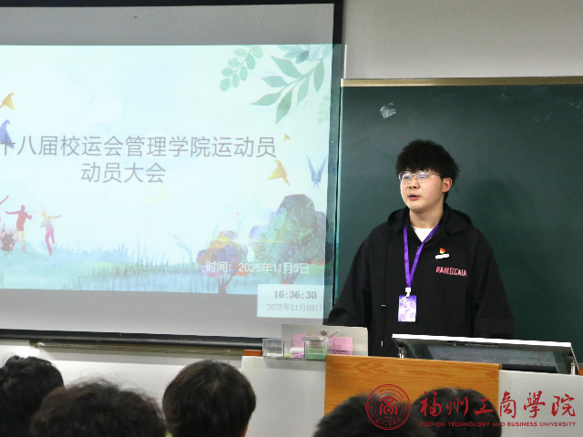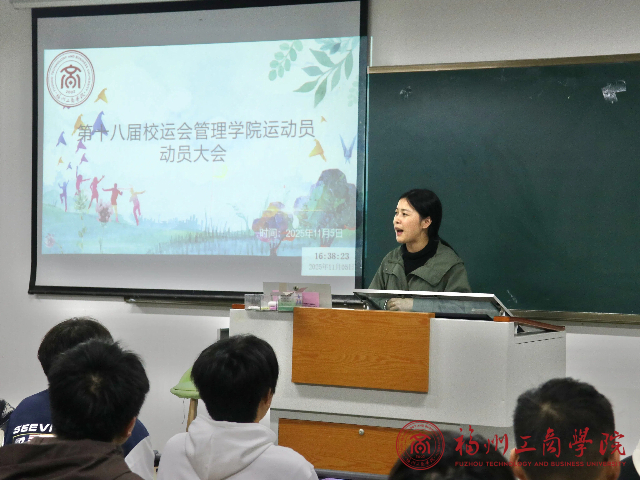 为激励运动健儿们奋勇拼搏、再创佳绩,11月5日下午,金年会jinnianhuicom第十八届校运会运动员动员大会于A102教室隆重举行。学生会主席陈俊楠与团委书记张春梅老师出席本次大会,为全体运动员加油鼓劲。