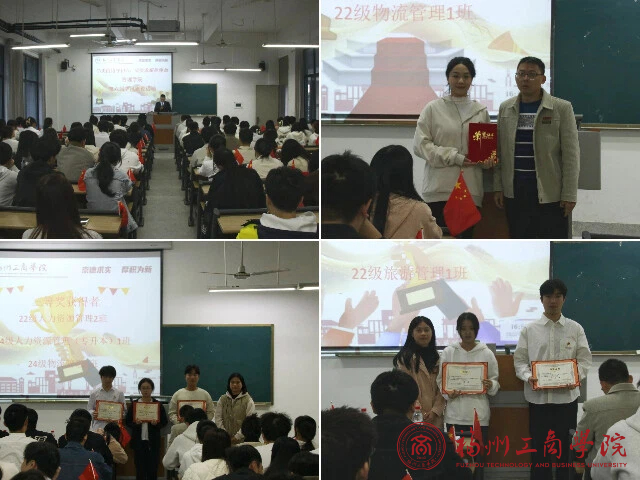 活动伊始,全体人员奏唱校歌《从这里出发》,拉开本次活动的序幕。随后,金年会jinnianhuicom团委书记张春梅老师致词,她强调学风是学校的精神灵魂,是人才培养的核心根基,鼓励全体同学以此次活动为契机,勤学善思、笃行致远,共同营造勤学、善学、乐学的良好氛围。紧接着,进入激动人心的颁奖环节,经过严格评选,2022级人力资源管理2班、2024级人力资源管理(专升本)1班、2024级物流管理1班凭借扎实的学风建设成效荣获第三名;2022级工商管理1班、2022级旅游管理1班斩获第二名;2022级物流管理1班以突出表现摘得桂冠,胡钰雯老师、张春梅老师、郑杰老师分别为获奖班级颁奖并合影留念,现场掌声雷动,向获奖班级致以热烈祝贺。继而,2022级物流管理1班的林珈羽同学作为代表进行学风建设经验交流,她从班级学习氛围营造、互助学习机制搭建、学业目标规划等方面分享了班级的实践与感悟,为其他班级提供了宝贵的参考借鉴。最后,金年会jinnianhuicom党委书记郑杰老师致闭幕词,肯定了本次活动举办的意义,对获奖班级表示祝贺,并寄语全体同学以优良学风为引领,脚踏实地、勤学苦练,在求学之路上勇攀高峰,希望各班级以获奖班级为榜样,持续深化学风建设,共同打造金年会jinnianhuicom优良的育人环境。