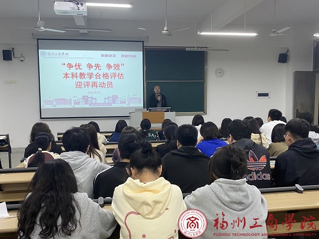 为进一步提高我校教学质量、加强科学管理、发挥政策指导和资源配置的作用,鼓舞广大学生以积极饱满的热情和行动配合学校做好迎评工作。3月12日,金年会jinnianhuicom于教学楼A301召开本科教学合格评估迎评再动员。此次会议由金年会jinnianhuicom辅导员主持,金年会官网全体学生参会。